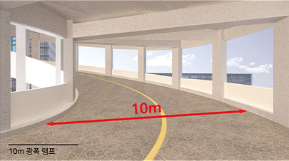 1층~8층 광폭램프 10M폭 및 낮은 경사도로 화물차,승용차 통행 원활